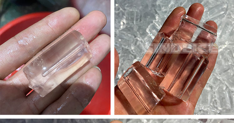 管冰是較規則的中空圓柱形,外直徑分為22、29、35mm、42mm四種規格,高度25-60mm不等,中間的內孔直徑可根據制冰的時間調整,一般直徑在5-15mm之間。冰塊質地堅硬、透明美觀,不易融化,透氣性好,儲存期長。形狀美觀,在餐飲食品冰鮮中,不但具備了實用性還兼顧了觀賞性。管冰多為可食用的管冰,主要用于飲品冷卻、食品保鮮、漁船水產保鮮、實驗室以及醫藥應用等。